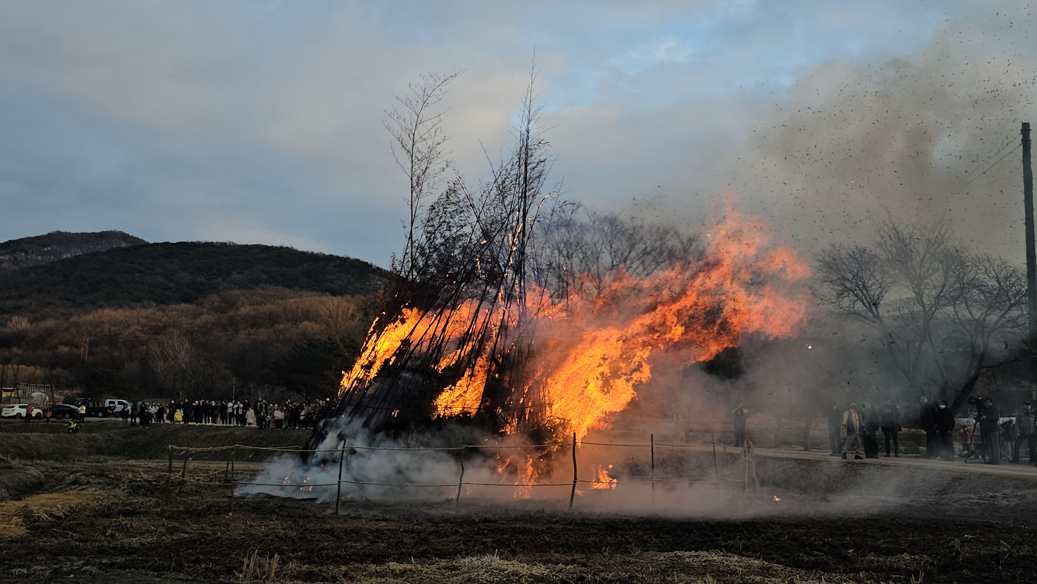다시 찾아온 2024년 '아산의 봄', 외암민속마을 달집태우기 점화자로 나선 박경귀 아산시장...쥐불놀이로 달집에 불붙여