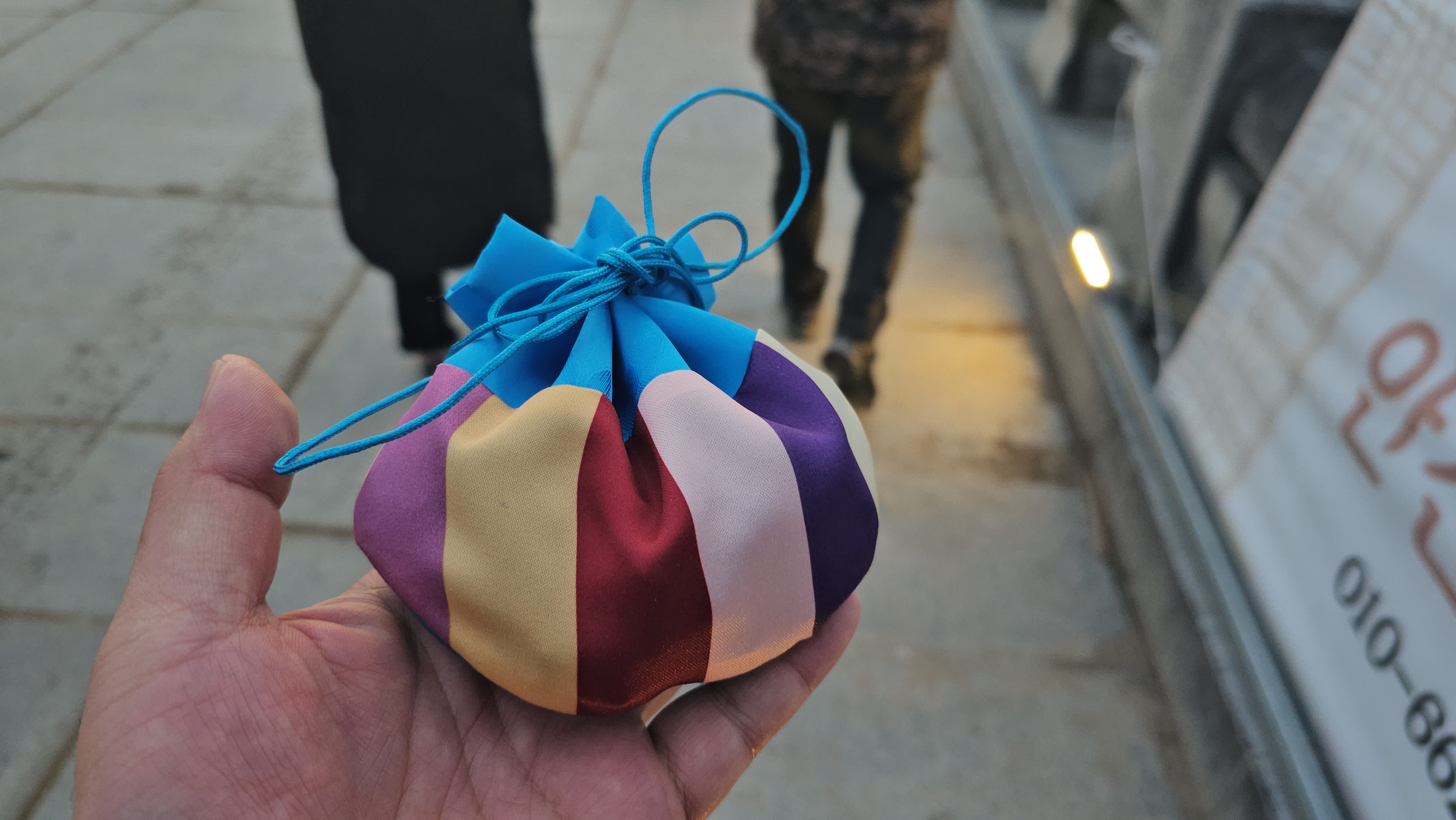 사람들은 긴줄을 서 호두와 땅콩이 든 복주머니를 하나씩 받아간다. 박경귀 아산시장은 줄 선 시민들과 아이들에게 인사를 하며 친근히 다가갔다.